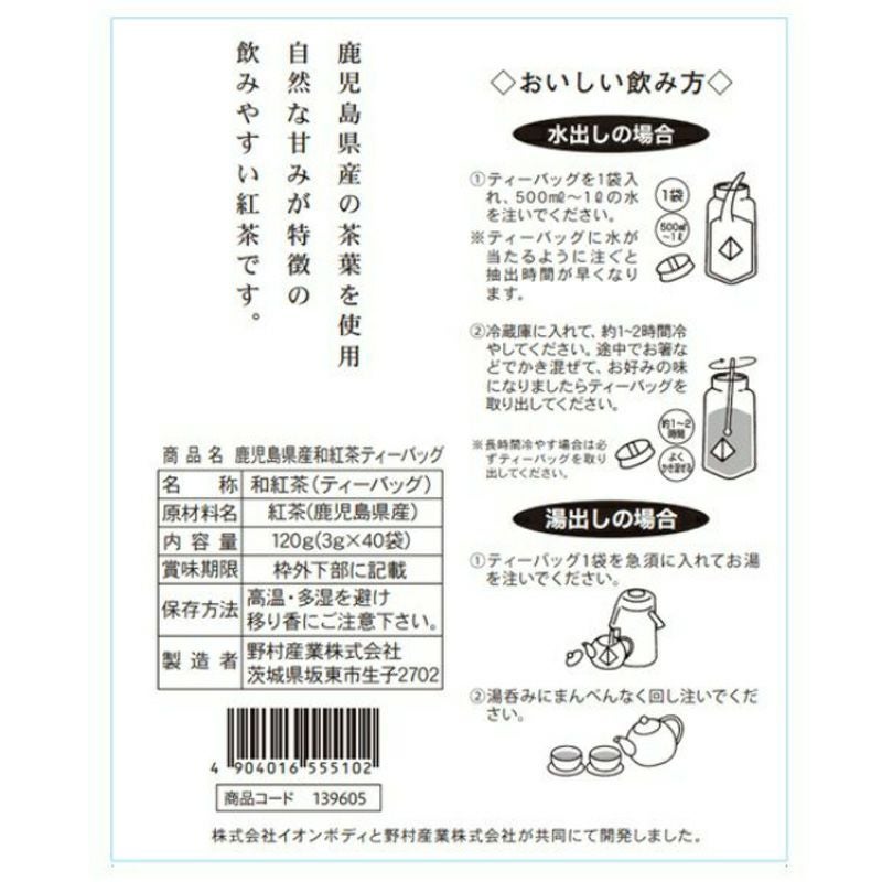 【イオンボディオリジナル】 鹿児島県産 和紅茶 3gx40袋 ティーバッグ 水出し お湯出し