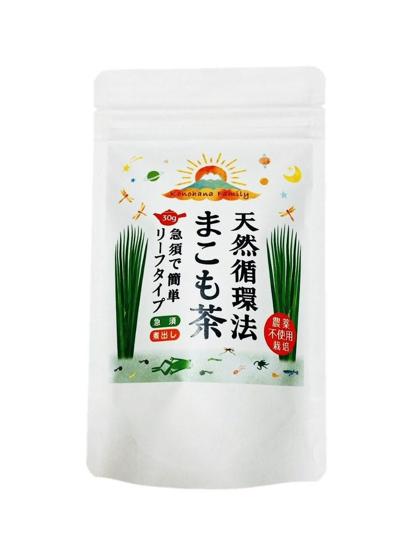 農薬や化学肥料を使わずに、作物本来の生命力を引きだす「天然循環j法」で育てたマコモの葉を使用したお茶です。