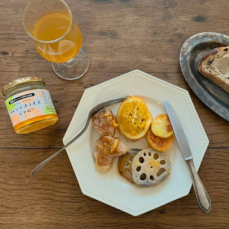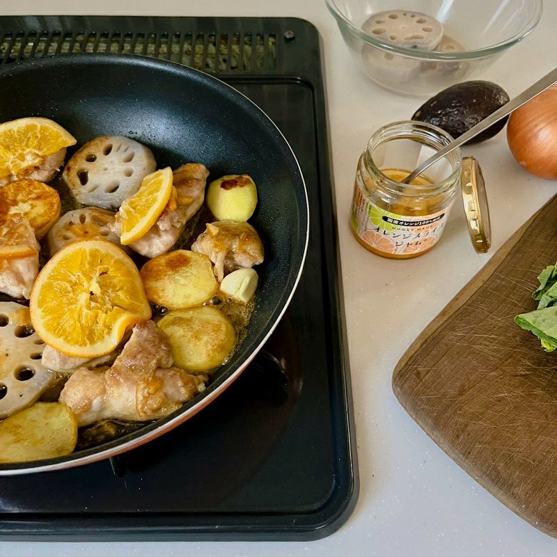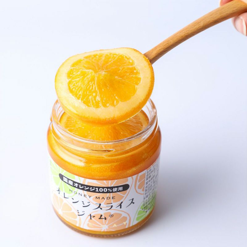 国産のネーブルオレンジをそのままの形を崩さずに国産天然はちみつとフルーツシュガー(果糖)で煮詰め、レモン汁のみで仕上げてぎっしり詰め込みました。