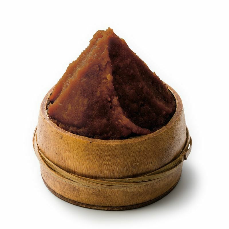 ※木桶で長期間自然熟成させるため、ロットにより味噌の色調が異なります。