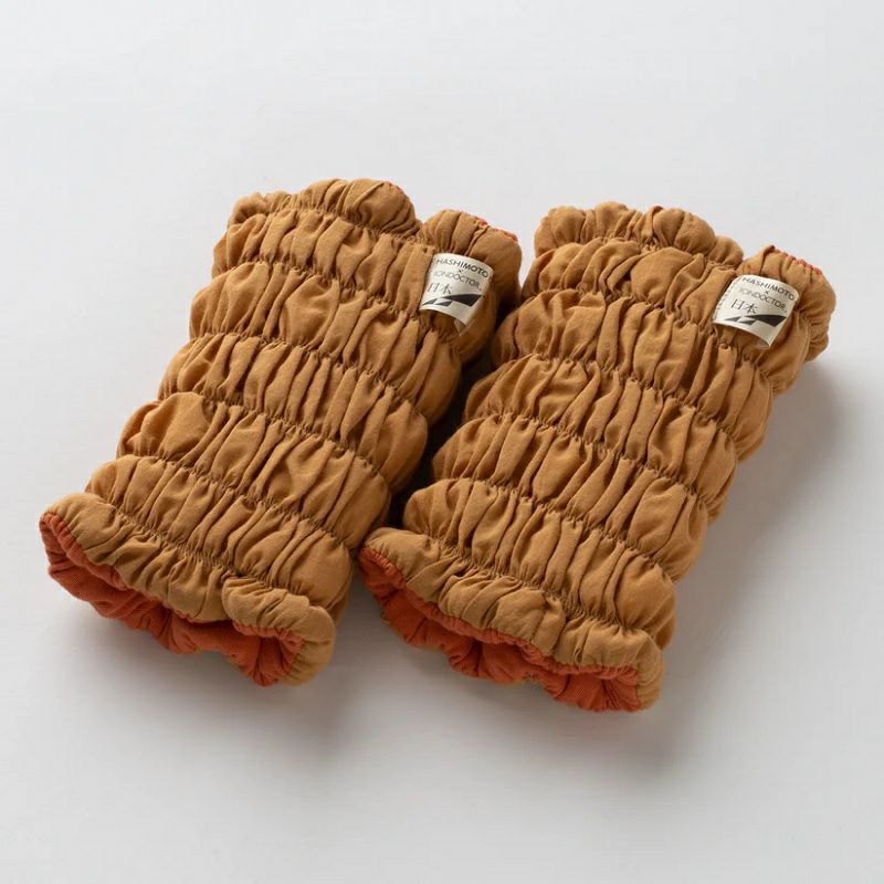 柿の皮や葉から染めた生地。優しい風合いのボタニカルカラーのウォーマーです。