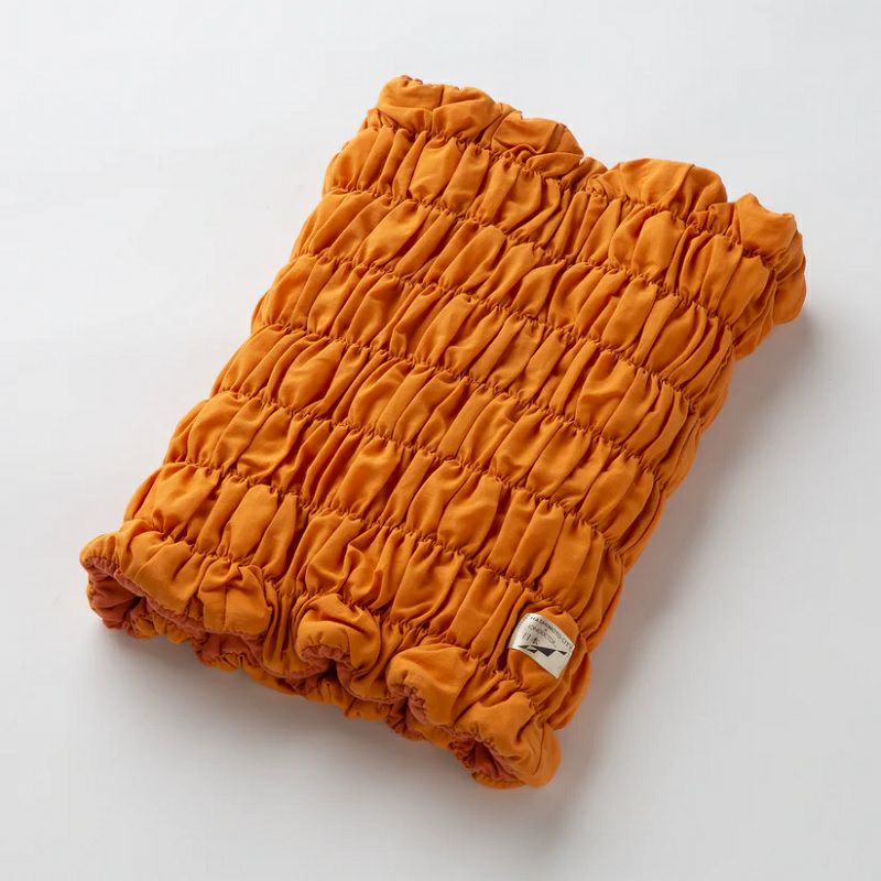 柿の皮や葉から染めた生地。優しい風合いのボタニカルカラーのウォーマーです。