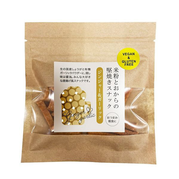 原材料名:米粉(米(国産))、おから(大豆(国産))、有機パーム油、生姜、醤油、食塩、ガーリックパウダー
