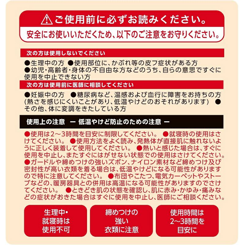 (4)「発熱体」は下着と「よもぎパット」ではさむようにして直接肌に触れないように装着してください。