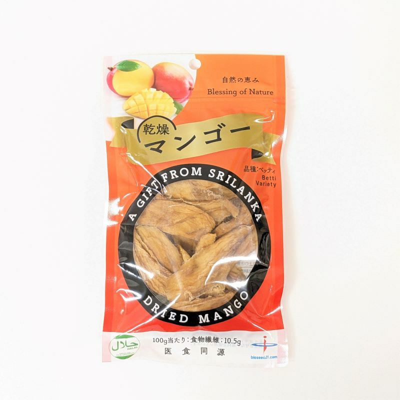 スリランカでJAS基準で栽培された完熟マンゴーの皮を剥き、スライスしてから低温(45℃)で18時間かけて乾燥しました。