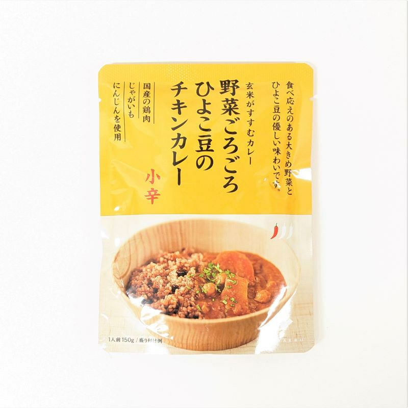 大きめ野菜とひよこ豆が入った、トマトの酸味と素材の甘さが特徴のレトルトカレー。