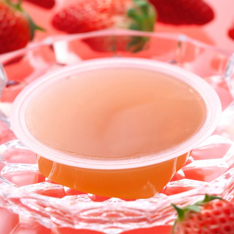 国産いちごの濃縮果汁を30%(生果汁換算)使用し、寒天でかためた、やわらか食感ゼリー。