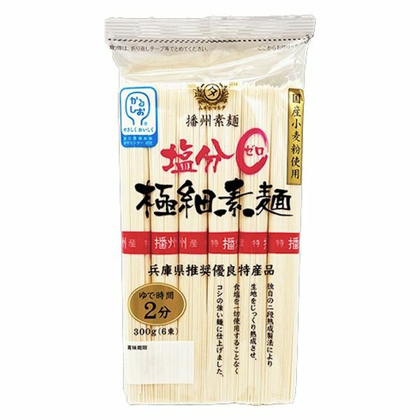 厳選した国内産小麦粉使用、食塩不使用。 田靡製麺 塩分ゼロ 極細素麺 300g