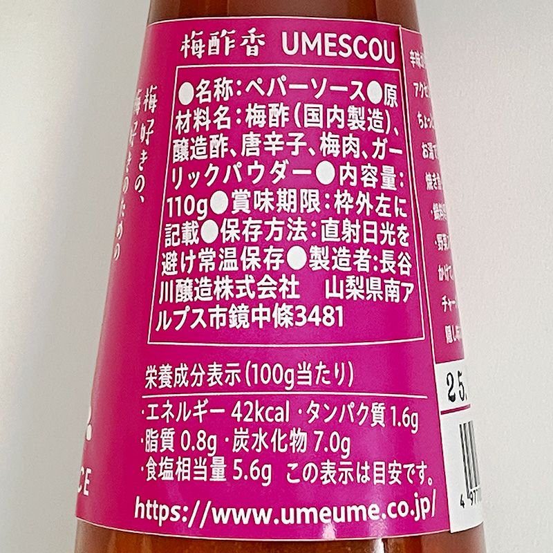 長谷川醸造 梅酢香 umescou 110g ペパーソース 無着色