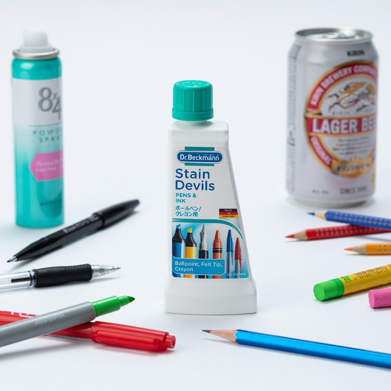 落とせるステイン(シミ):ボールペン、水性インク、フェルトペン、蛍光ペン、クレヨンなど
