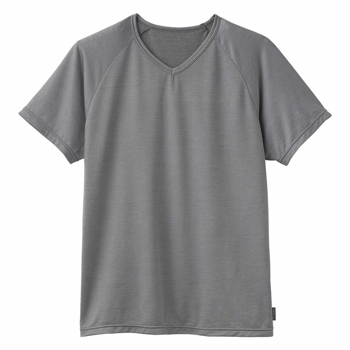 腕・肩が動かしやすいラグランスリーブにネックはクリーンなVネック。同じコンフォートクールシリーズのメンズ半袖より若干着丈が短めの作りになっています。