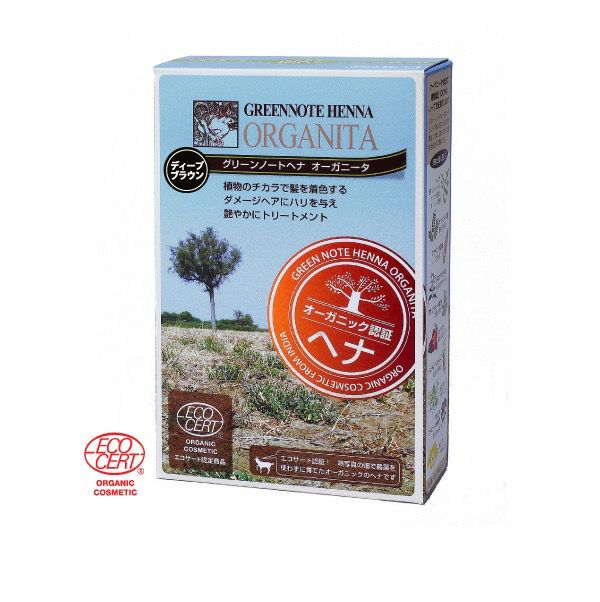 日本で唯一の正規オーガニック認証取得の白髪染め<黒髪に近い濃い茶色> グリーンノートヘナ オーガニータ ディープブラウン 100g