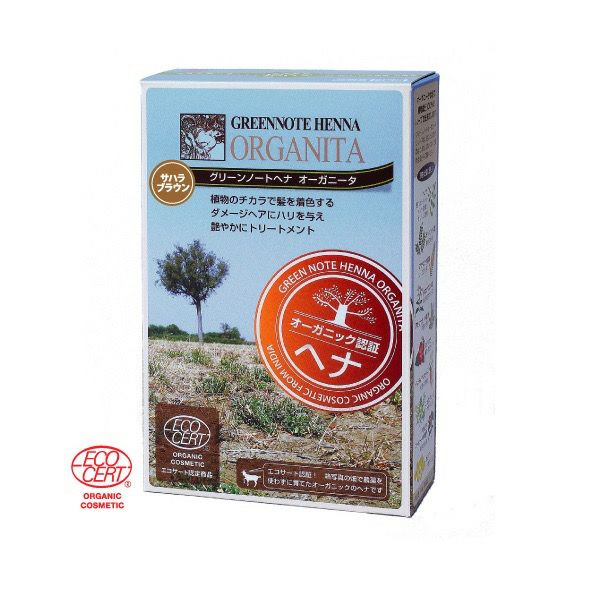 日本で唯一の正規オーガニック認証取得の白髪染め<明るい茶色> グリーンノートヘナ オーガニータ サハラブラウン 100g