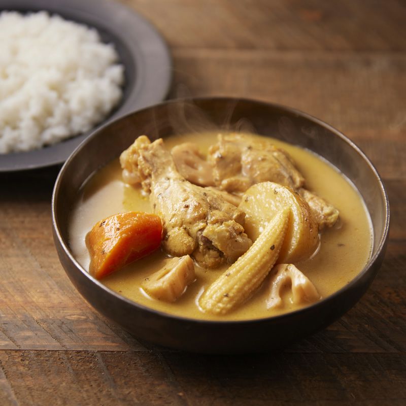 原材料名:鶏肉(国産)、野菜(じゃがいも、れんこん、にんじん、ヤングコーン、にんにく)、とんこつエキス、チキン白湯スープ、香辛料、かつおぶしだし、ラード、おろししょうが、こんぶだし、でん粉、砂糖、食塩、がらスープの素、カレー粉、野菜ブイヨン、(一部に小麦・ごま・大豆・鶏肉・豚肉・ゼラチンを含む)