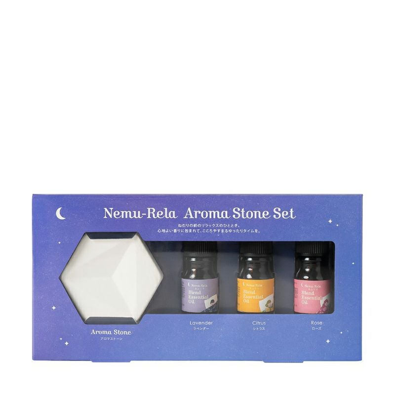 3種類のブレンドエッセンシャルオイル(精油)と素焼きのストーンのセットです。