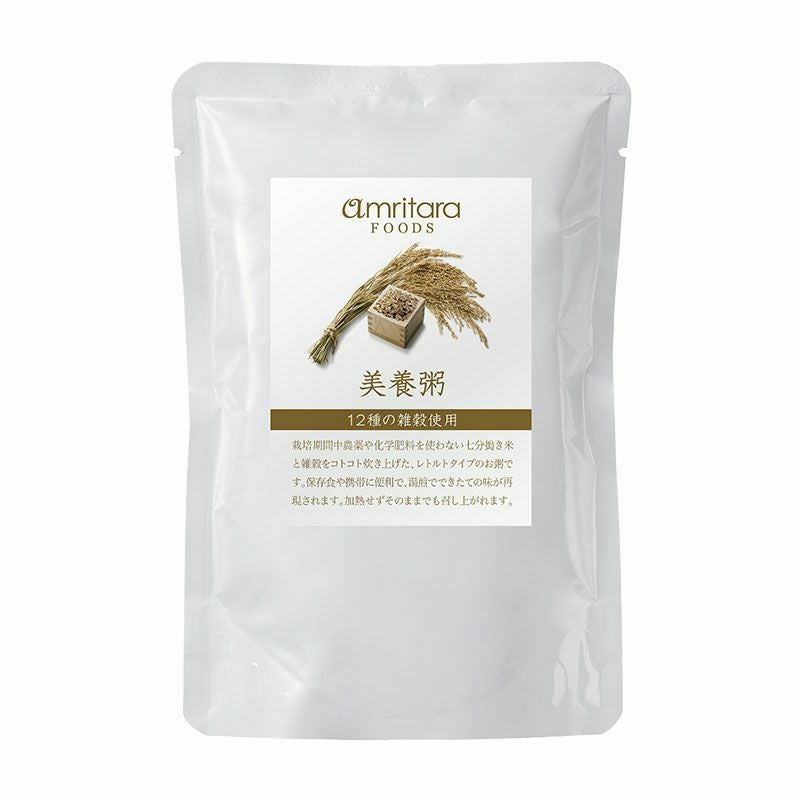 栽培期間中農薬や肥料もしくは化学肥料を使わない七分搗き米と、あわ、きび、ひえ、押し麦、丸麦、はと麦、たかきび、緑米、赤米、黒米、もち玄米、うるち玄米といった熊本県産の12種の雑穀を、とろっとコク深く炊き上げました。