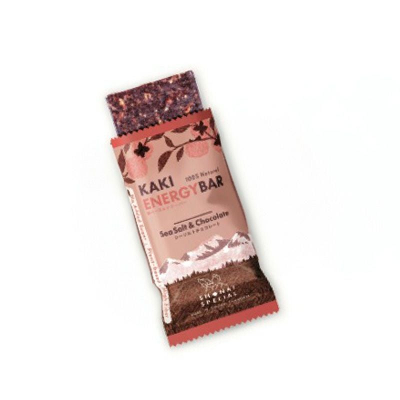 濃厚でビターなカカオの豊かでナッティな風味。カシューナッツ、アーモンドなどのナッツの香ばしさ。カカオニブのカリッとした食感と、深い味わいが楽しめます。柿とデーツのしつこすぎない、程よい甘さは激しいアクティビティの合間にも食べやすい爽やかさ。甘すぎるのが苦手な方、エナジーバーが初めての方に親しみやすいフレーバーです。