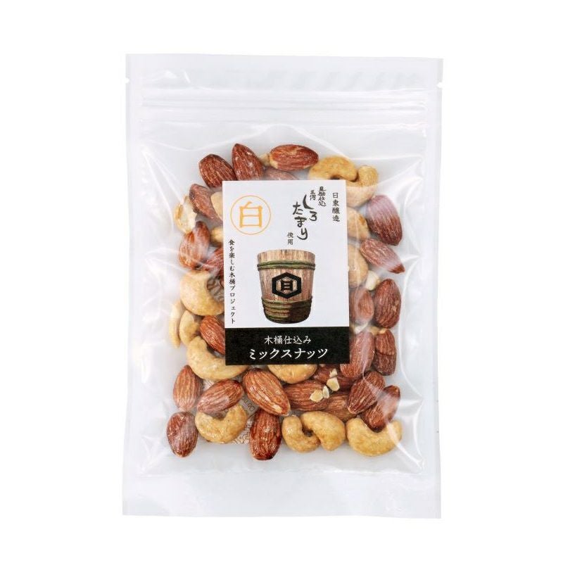 愛知県の日東醸造さん製造、究極の白醤油「三河しろたまり」を使用したミックスナッツです。
