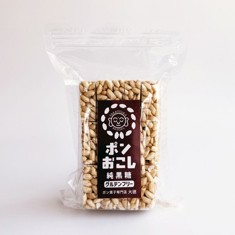 原材料:米(大分県玖珠町)、純黒糖(さとうきび(沖縄県波照間))、麦芽水飴(鹿児島県産さつまいも由来)、米油(米ぬか(国産))、塩(沖縄県宮古島)