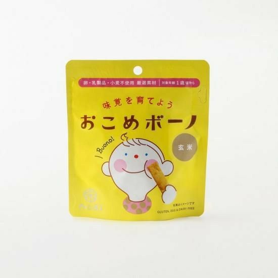 しっかり噛むことにより、素材の美味しさを感じる“味覚”を育て、食べる楽しさを体験してもらいたい。卵・乳製品・小麦粉を使わず、国産の米粉を使った、食物アレルギーのある子どもさんにも、お召し上がりいただけるお菓子です。