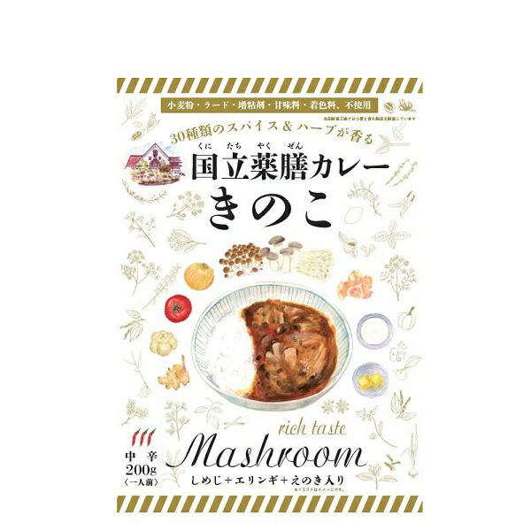原材料名:野菜(玉ねぎ、しめじ、エリンギ、えのき)(国産)、鶏肉、トマト・ジュースづけ、牛乳、乾燥マッシュポテト、トマトペースト、砂糖、全粉乳、チキンブイヨンパウダー、カレー粉、トマトケチャップ、たまりしょうゆ、中濃ソース、食用なたね油、でんぷん、おろしにんにく、おろししょうが、玉ねぎエキス、食塩、バター、(一部に乳成分・大豆・鶏肉を含む)