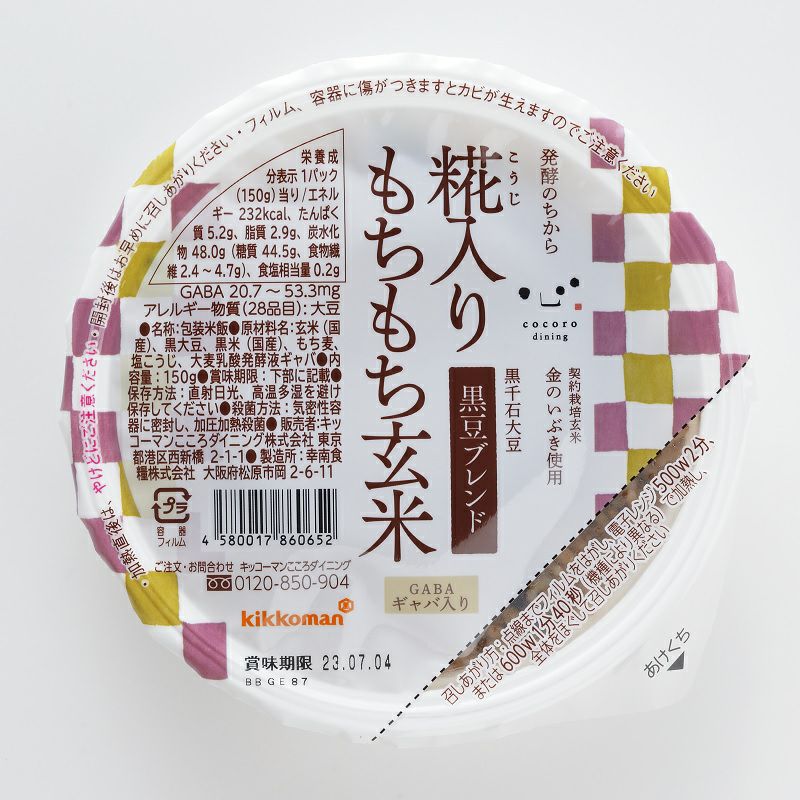 原材料:玄米、黒大豆、黒米、もち麦、塩こうじ、大麦乳酸発酵液ギャバ