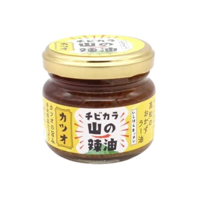 高知県でとれた新鮮なカツオと、地元の野菜をたっぷり使った「山の辣油」は、妥協のない『辛さ』へのこだわりと、高知県産のカツオと野菜たっぷりの『旨み』がクセになる、食べるおかずラー油です。化学調味料は使わず、それぞれの食材が持つ味の重なりと深みを是非味わってください。