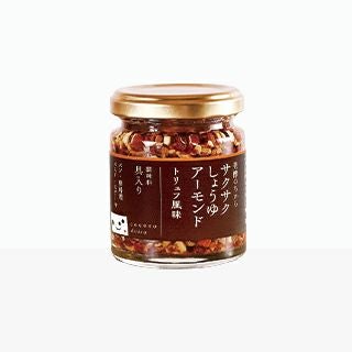 原材料名:なたね油(国内製造)、ローストアーモンド、フリーズドライしょうゆ(大豆・小麦を含む)、フライドオニオン(小麦を含む)、砂糖、黒トリュフソルト、フライドガーリック、酵母エキス、ごま、しょうゆ、魚醤パウダー、こしょう/加工でん粉、香料、酸化防止剤(ビタミンE)