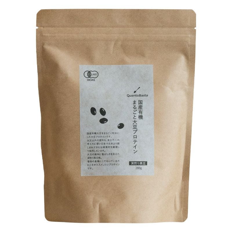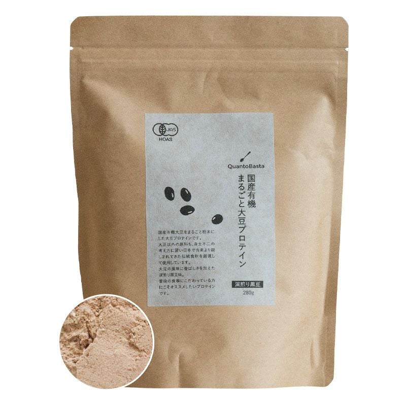原料と製法にこだわり抜いた、クアントバスタオリジナルのオーガニックソイプロテイン。深煎り黒豆味は、プレーンにカフェインレスの深煎り黒豆パウダーを加え、香ばしい風味が特徴です。