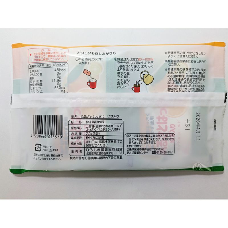 原材料名:上白糖(甜菜(北海道産))、ゆず、はっさく、ビタミンC、香料