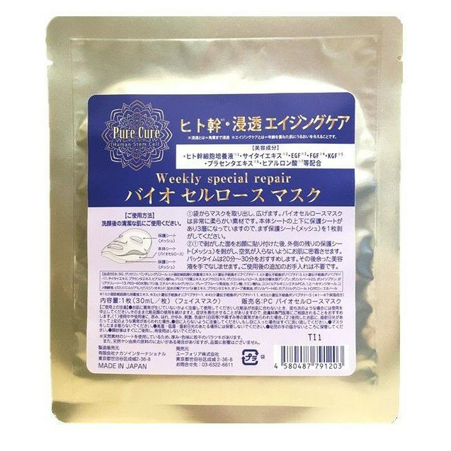 ヤシ由来の天然素材を使用し、不織布に比べ高密着、高保湿力。美容成分はヒト幹細胞培養液・サイタイエキス・プラセンタエキス・EGF・FGF・KGF・ヒアルロン酸等、高濃度配合でお肌に潤いをお届けします。ここぞという時のスペシャルケアに。