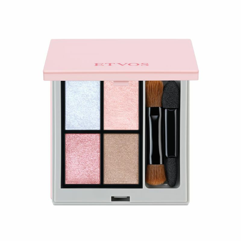 冷たさを秘めたクールトーンのピンクに、凛としたシルバーの光を含むブルーハイライトが重なり、まぶたにひんやりとした透明感とやわらかで甘い奥行きを添えます。