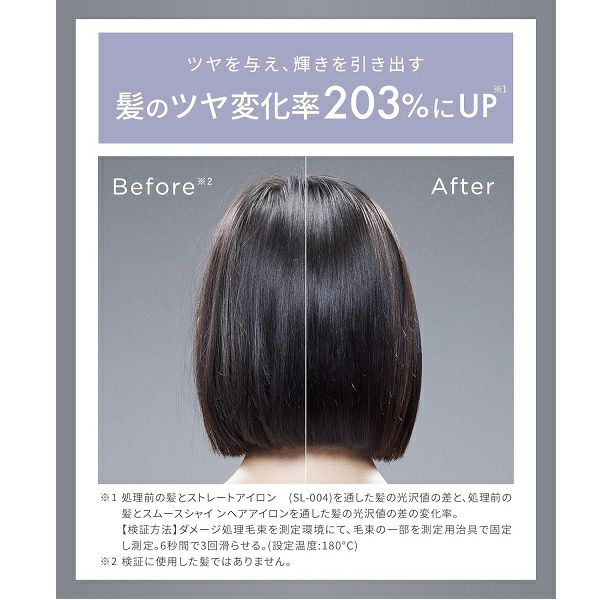 ダメージを抑えてツヤ髪へ導くシルキーテックプレートと、イオンバランスを整えワンランク上のまとまりへ導くダブルペリア※イオンをかけあわせた、独自テクノロジーでシルクのようなツヤめく髪へ。
