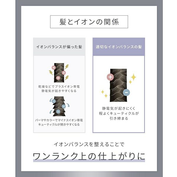 ※髪の毛のイオンバランスを整えること。髪の毛を補修するものではありません。