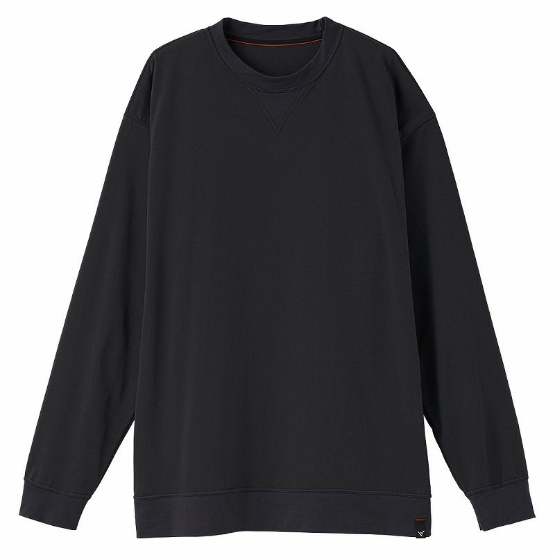 メンズのロングスリーブクルーネックは首周りや袖口にフライスをつけることでメリハリあるデザインに、首元には縮み防止と汗止めの役割も担うV型ガゼットを配置。