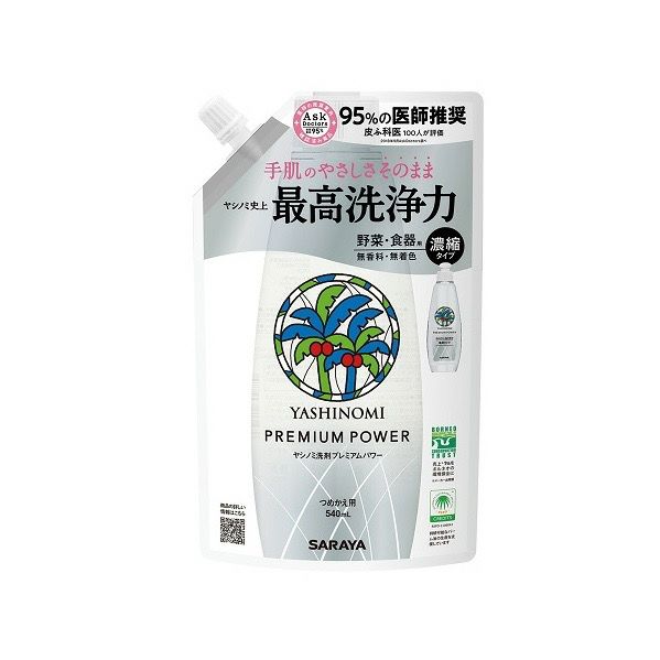手肌へのやさしさそのまま ヤシノミ史上最高洗浄力 ヤシノミ洗剤 プレミアムパワー 詰替用 540ml