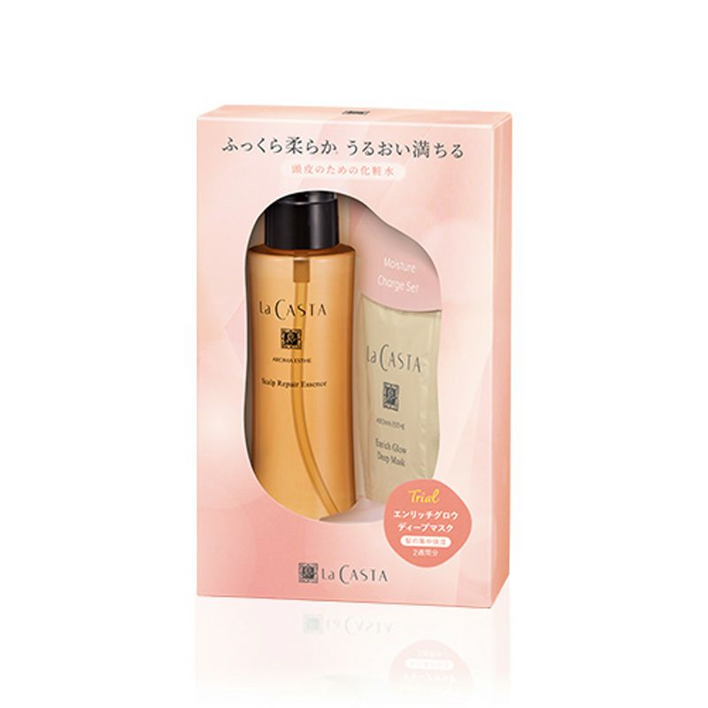乾燥した頭皮にうるおいを与える頭皮の化粧水「スキャルプ リペア エッセンス」に加え、芯からうるおい輝きを放つ髪へ導く集中トリートメント「エンリッチグロウ ディープマスク」を2週間しっかり試せる限定セット。