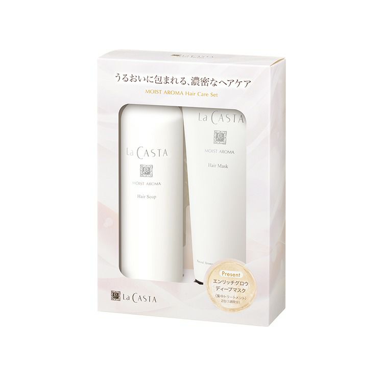 モイストアロマ ヘアソープとヘアマスクに、3日に1度のケアで美髪に導く集中補修トリートメント エンリッチグロウ ディープマスク [1週間分(2包)]がついた冬の髪悩みをケアする限定セット。