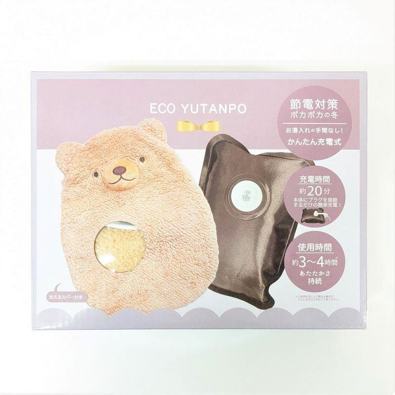 かわいいクマのカバー付きの充電式湯たんぽです。