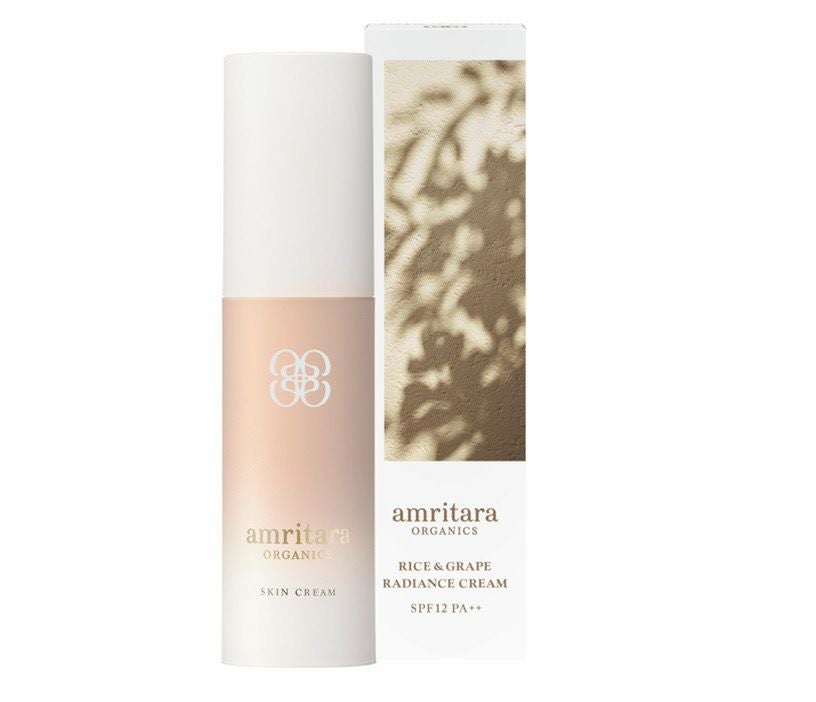 カロテノイドを含むブアメラ果実オイル*2やアスタキサンチン*3を配合し、乾燥によりくすんだ肌を潤いで守る<ライス&グレープ ラディエンス クリーム>と、アムリターラの代表的な商品の一つであり、美容クリームとしても使える日焼け止め<ベリーズビューティーサンスクリーン>が一つになりました。紫外線吸収剤や酸化チタン・酸化亜鉛は不使用、多彩な植物の力でSPF12 PA++を実現しています。