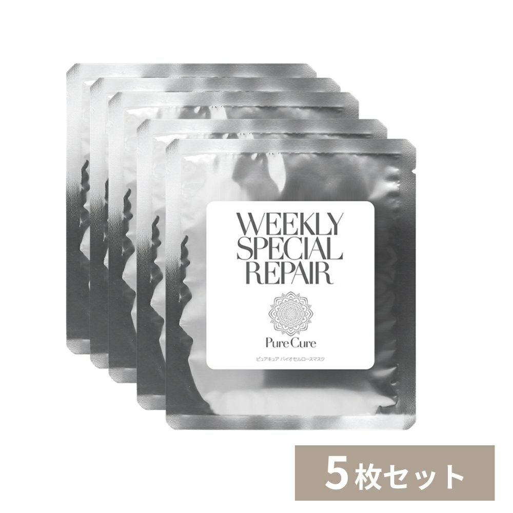 ヤシ由来の植物繊維を使用したバイオセルのマスクにヒト幹細胞培養液を高配合したパック PureCure(ピュアキュア)ウィークリースペシャル バイオセルロースマスク フェイスパック 5枚セット