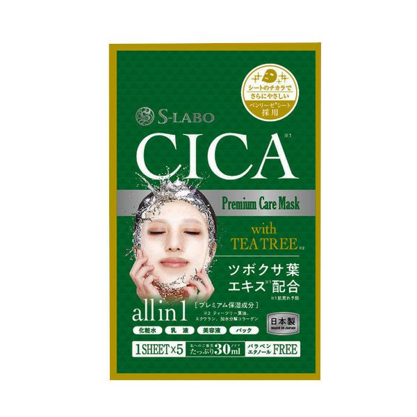 肌荒れ、乾燥が気になるお肌にシカ(ツボクサ葉エキス)、ティーツリー葉油配合。肌とお肌に優しい旭化成のシートを採用し、パラベンやエタノール配合なしの処方で、敏感肌の方にもおすすめです。