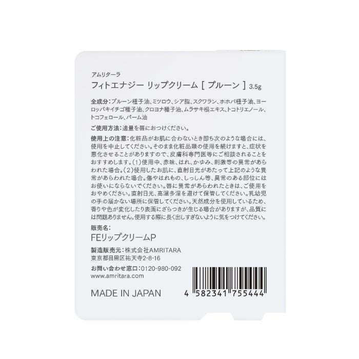 他の画像を見る おすすめ amritara アムリターラ フィトエナジー リップクリーム プルーン 3.5g 保湿 在庫切れ 再入荷お知らせ お気に入りに登録する (0) 当店特別価格 ¥ 1,760 税込