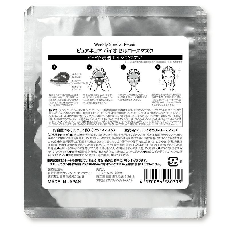 他の画像を見る ヤシ由来の植物繊維を使用したバイオセルのマスクにヒト幹細胞培養液を高配合したパック PureCure(ピュアキュア)ウィークリースペシャル バイオセルロースマスク フェイスパック 5枚セット カートに入れる お気に入りに登録する (0) 当店特別価格 ¥ 4,950 税込