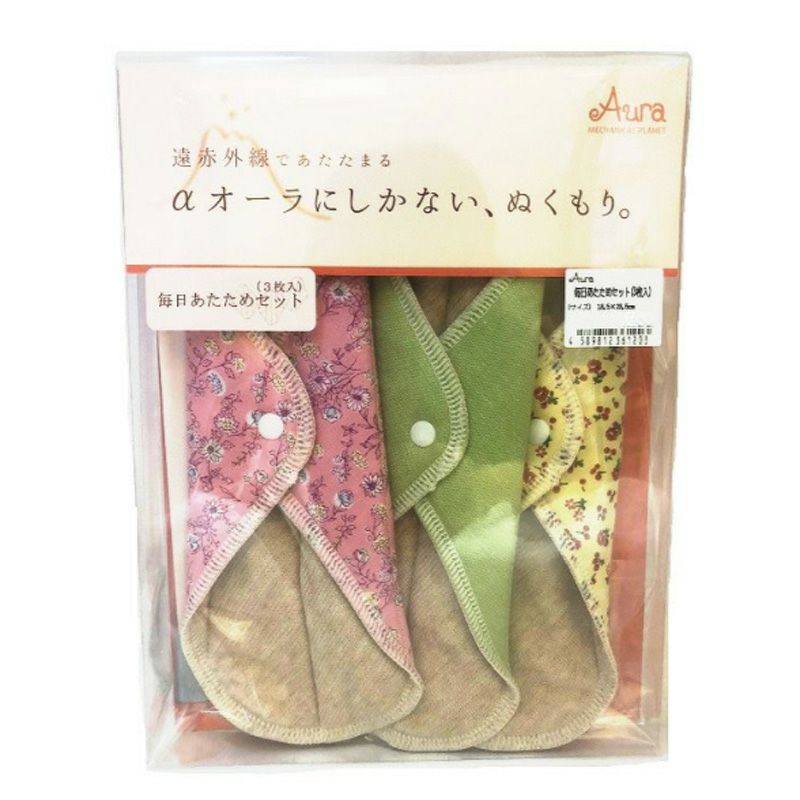 海底火山(オーラ)を練り込んだ生地で体温を蓄えて、じんわり、ポカポカ、カイロみたいなあたためパッドです。