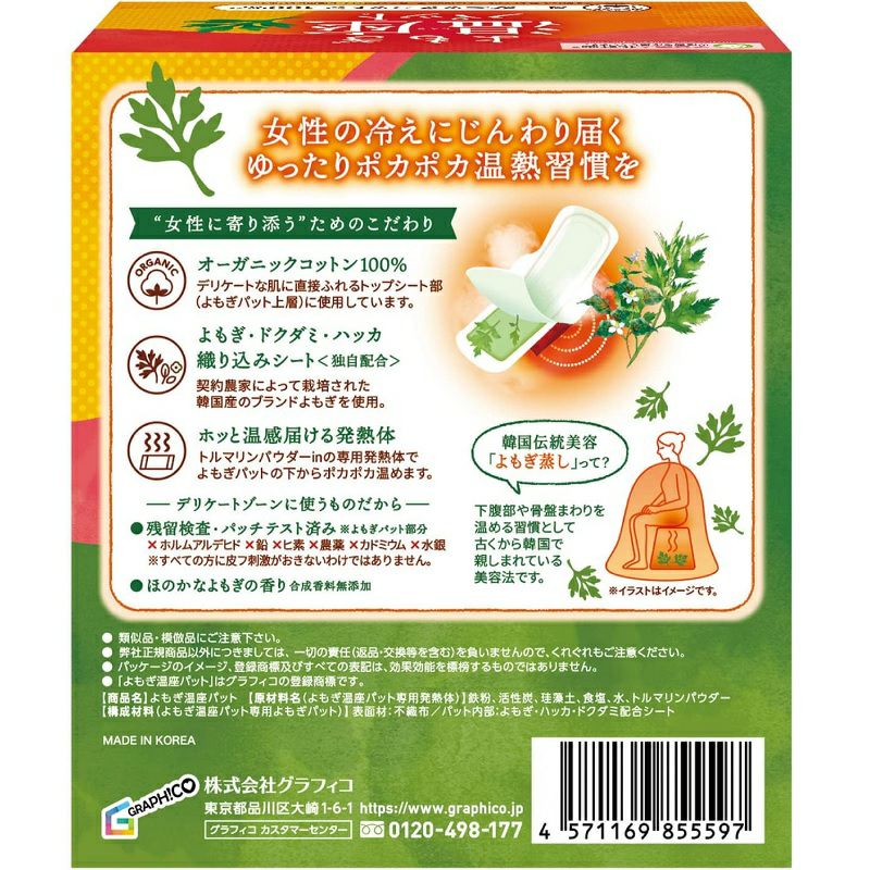 じんわり届く、韓国産よもぎとドクダミ・ハッカが配合された女性のためのナプキン型温熱パットです。