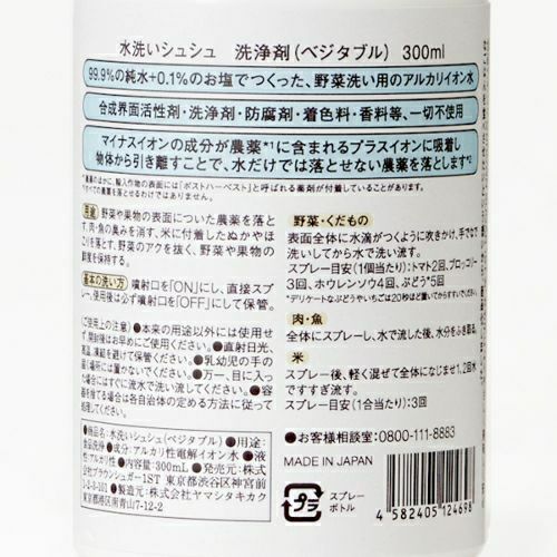 99%の純水を1%のお塩を電気分解して作った、農薬除去用野菜洗いアルカリイオン水洗浄剤です。