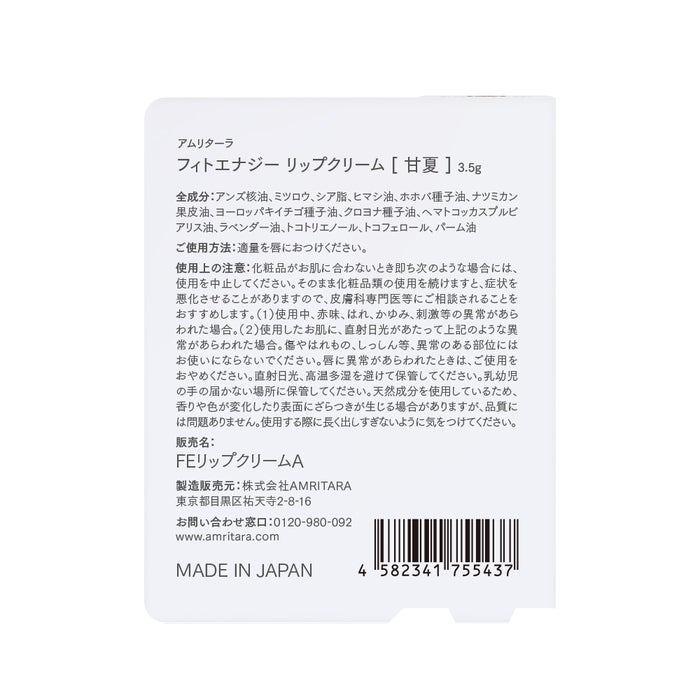 他の画像を見る 【ノベルティプレゼント】amritara アムリターラ フィトエナジー リップクリーム 甘夏 3.5g 保湿 カートに入れる お気に入りに登録する 5.00 (1) 当店特別価格 ¥ 1,760 税込