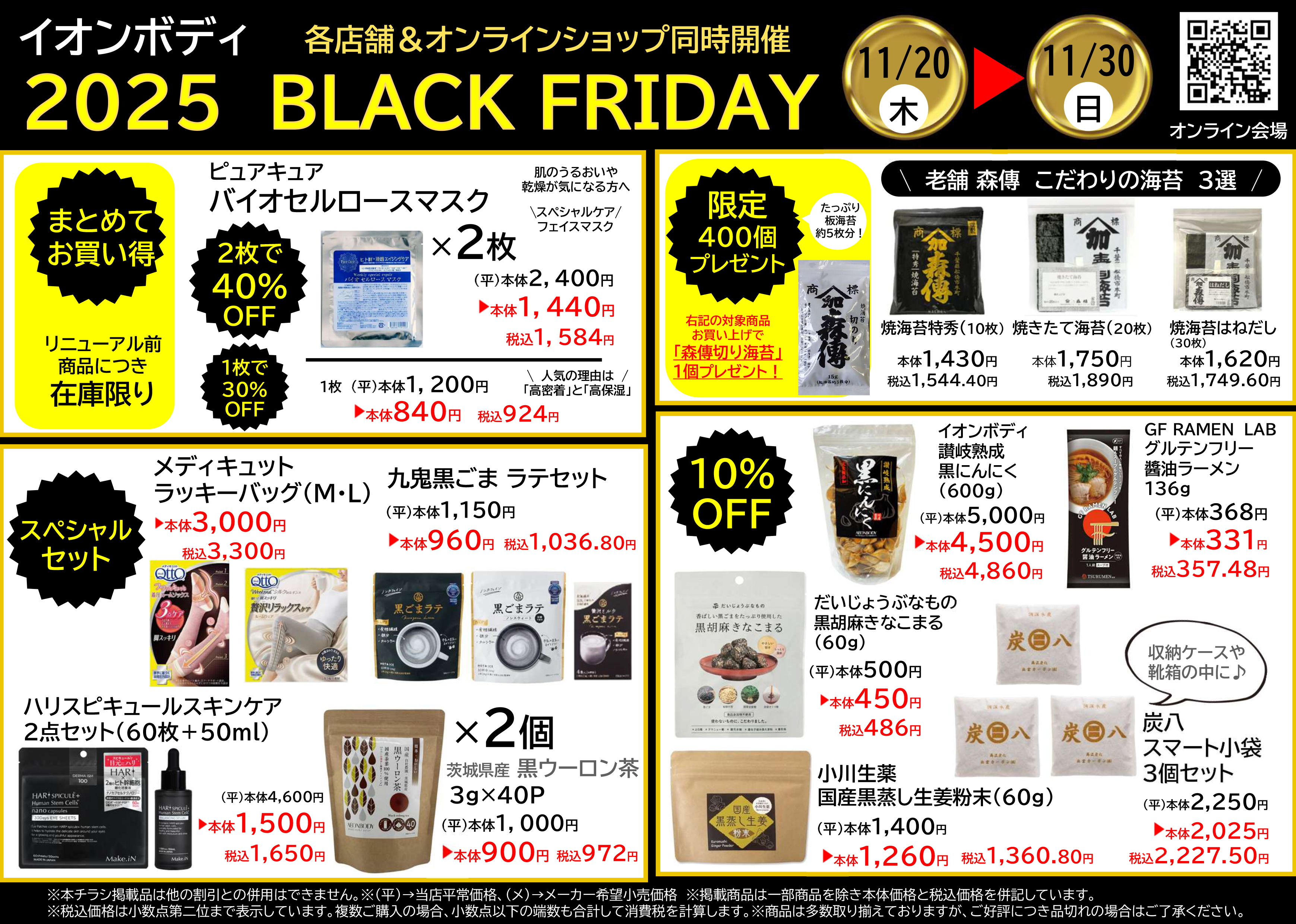 11月20日(木)から11月30日(日)までブラックフライデーがスタートします!ラインナップをチェック! 対象商品はオンラインでもご注文いただけます。 ⇒チラシでチェック!(PDF) ⇒PDFが閲覧できない方はこちらから |