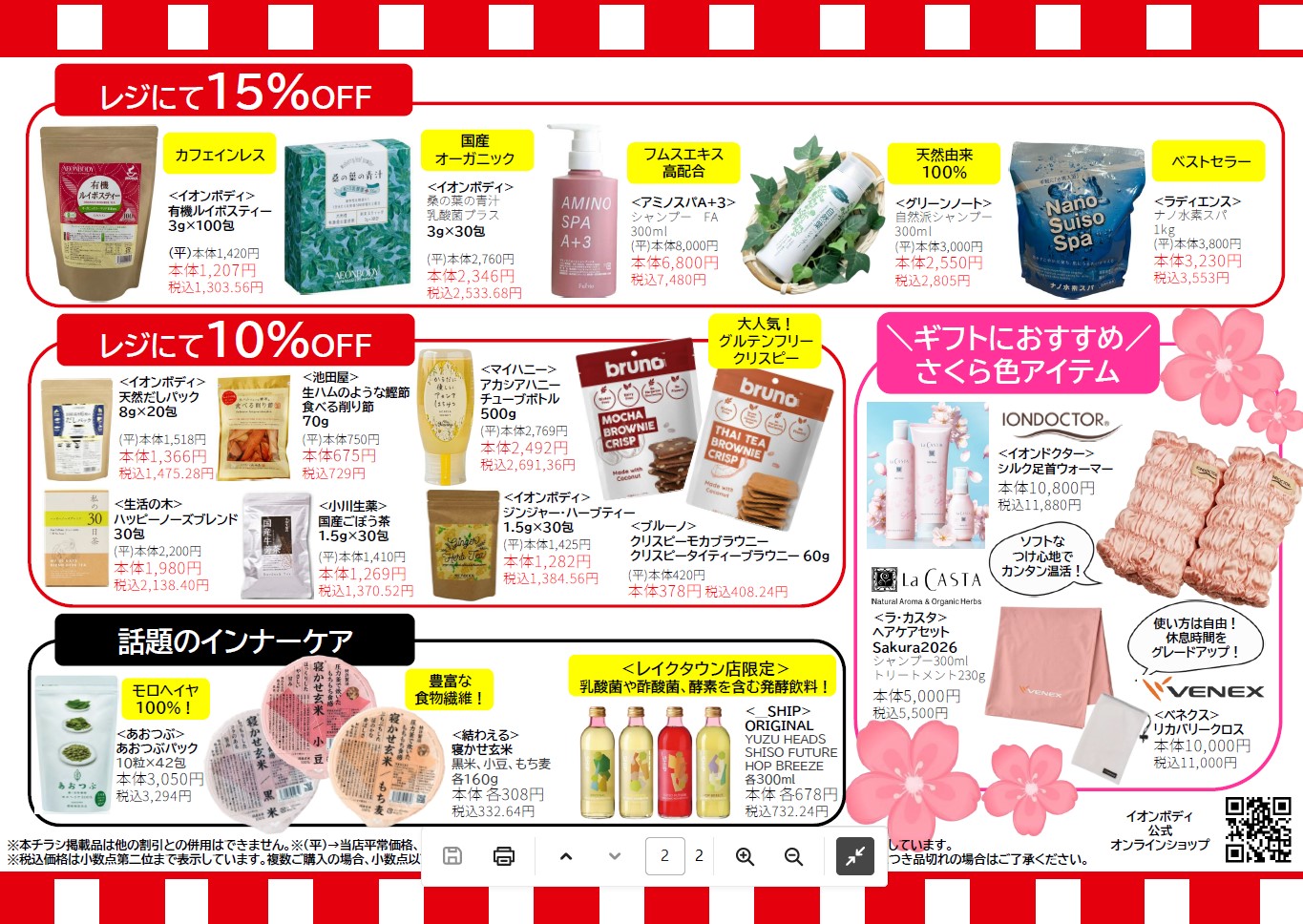 2月1日(土)から決算謝恩セールがスタートします!ラインナップをチェック! 一部商品はオンラインでもご注文いただけます。 ⇒セール商品をチラシでチェック!(PDF) PDFが閲覧できない方はこちらから ⇒1枚目 ⇒2枚目 |